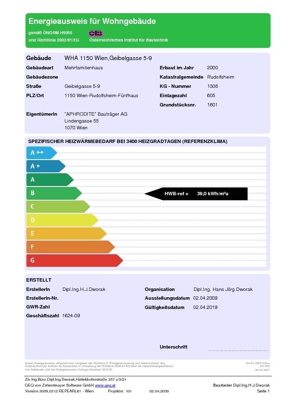 Information gemäß Energieausweis-Vorlage-Gesetz 2012