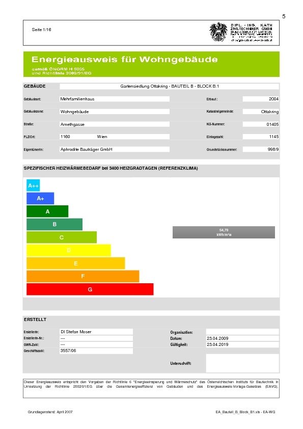 - Baldiag. 9+11, Haslingerg. 51+53+55+57, Ganstererg. 8+10, Arnethg. 12-14